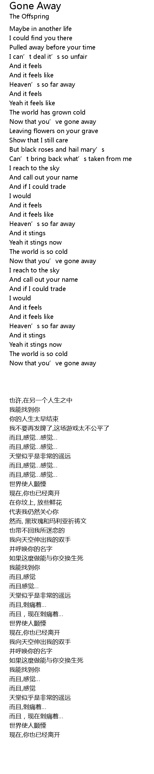 | 歌曲 | Gone Away |