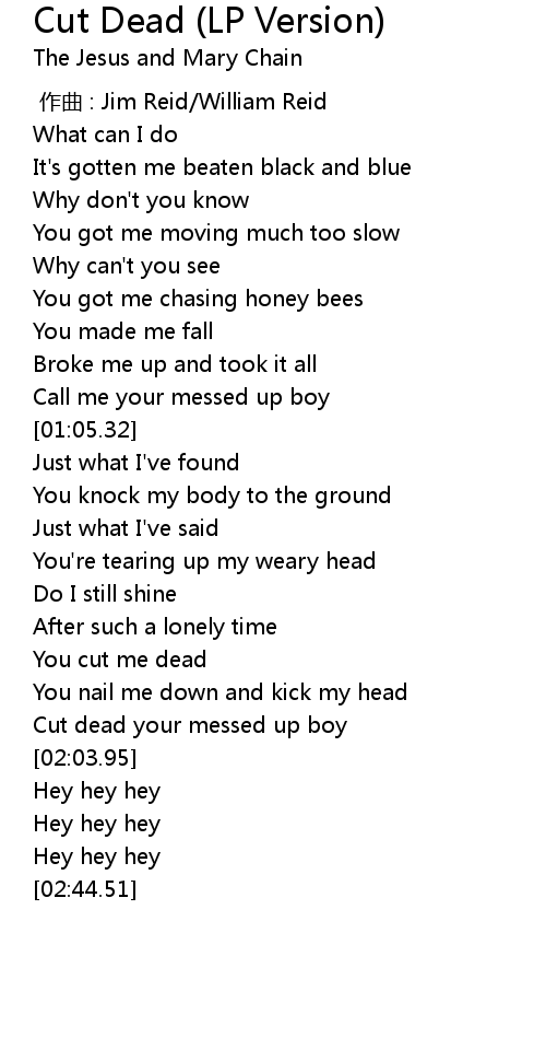 | [00:00.000] | zuo qu : Jim Reid William Reid |