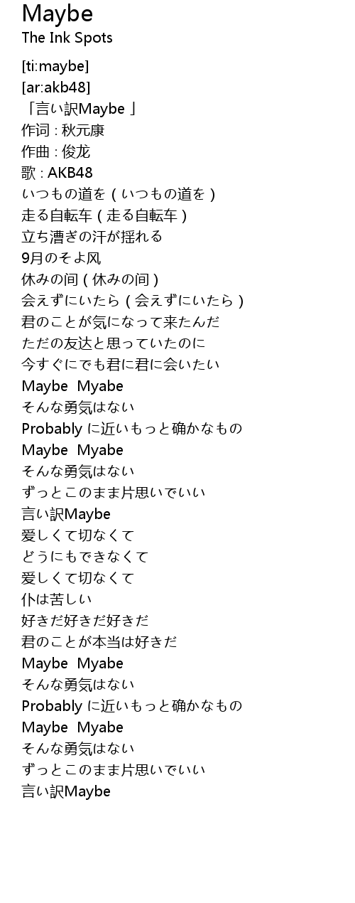 | [01:01.523] | Probably に近いもっと确かなもの |