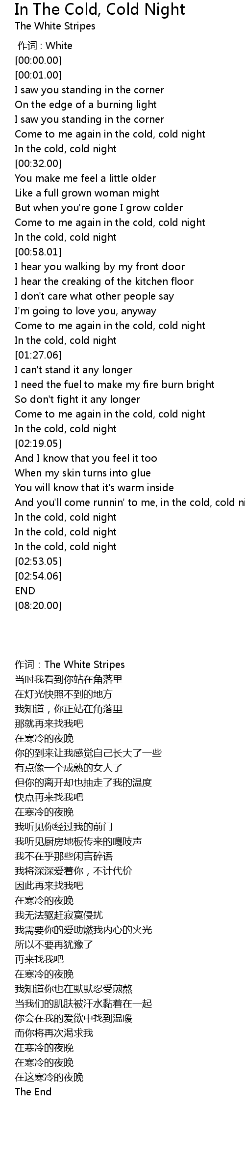 | [02:34.01] | And you' ll come runnin' to me, in the cold, cold night |
