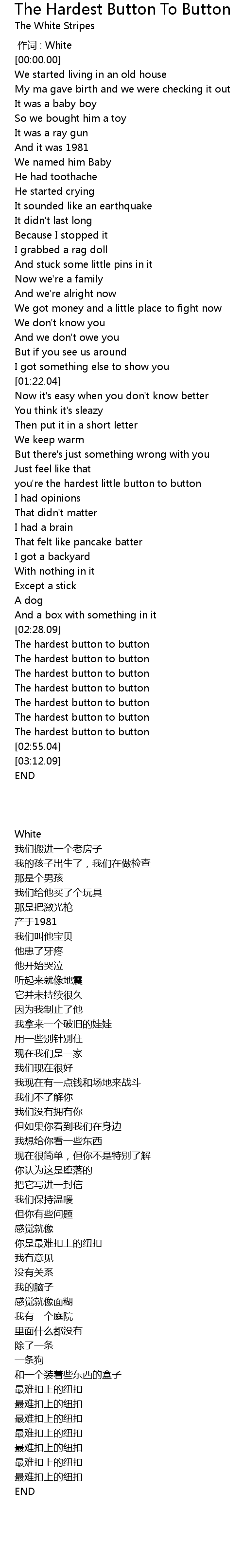 | 歌曲 | The Hardest Button To Button |