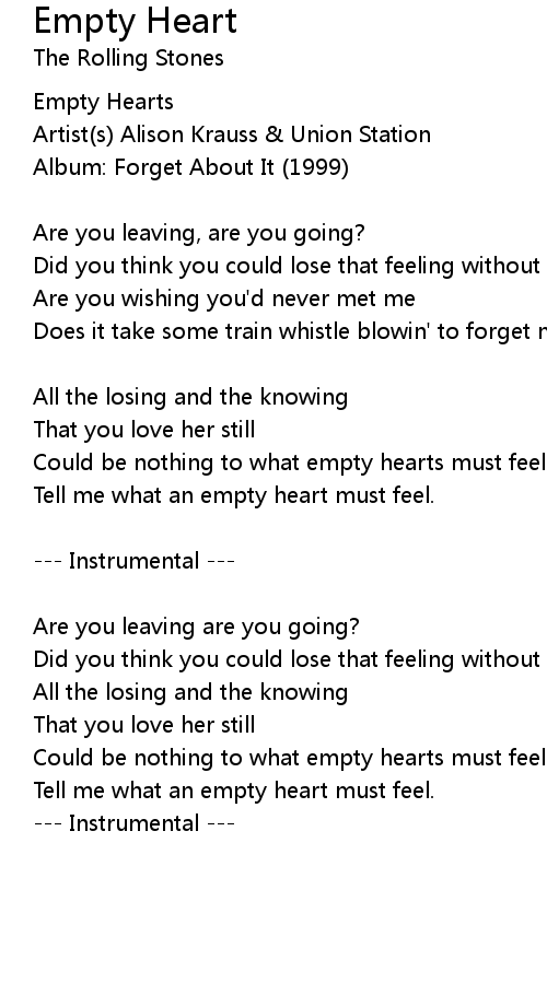 Tell me what an empty heart must feel. |