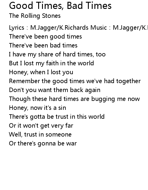 | 歌曲 | Good Times, Bad Times |