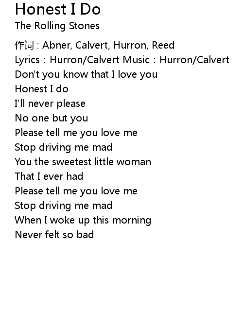 | 歌曲 | Honest I Do |