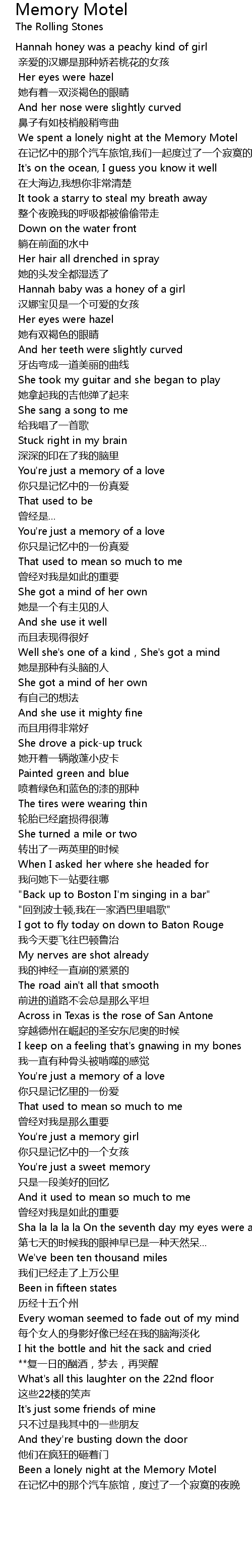 | Been a lonely night at the Memory Motel | |
