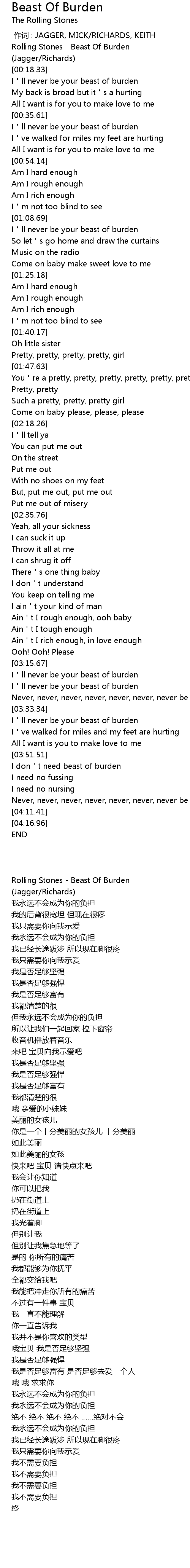 | [00:00.00] | Rolling Stones - Beast Of Burden |