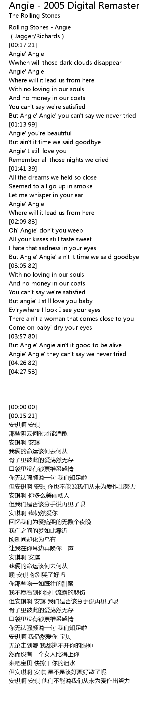 | [03:31.95] | But angie' I still love you baby |