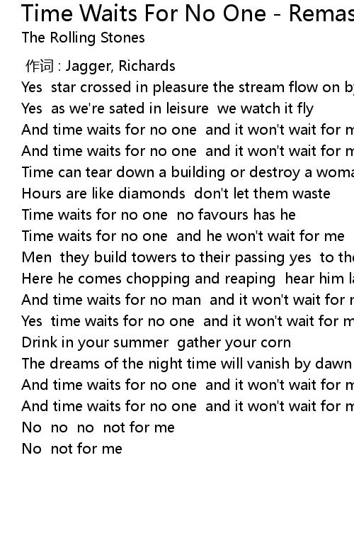 | [01:33.49] | Time waits for no one and he won't wait for me |