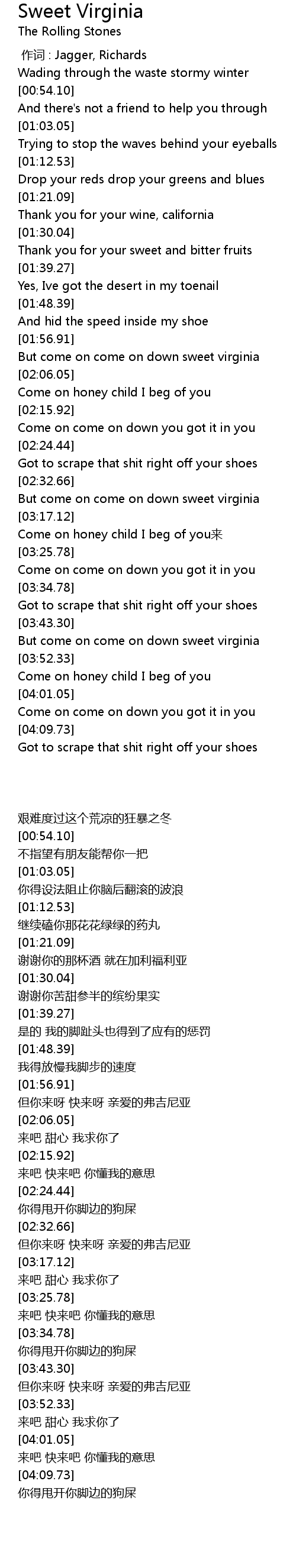 | [03:45.92] | 但你来呀 快来呀 亲爱的弗吉尼亚 |