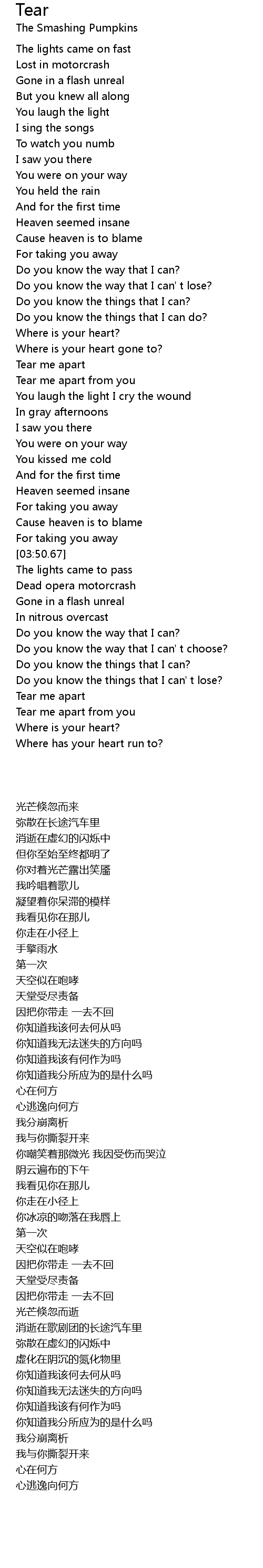 Do you know the things that I can' t lose? |