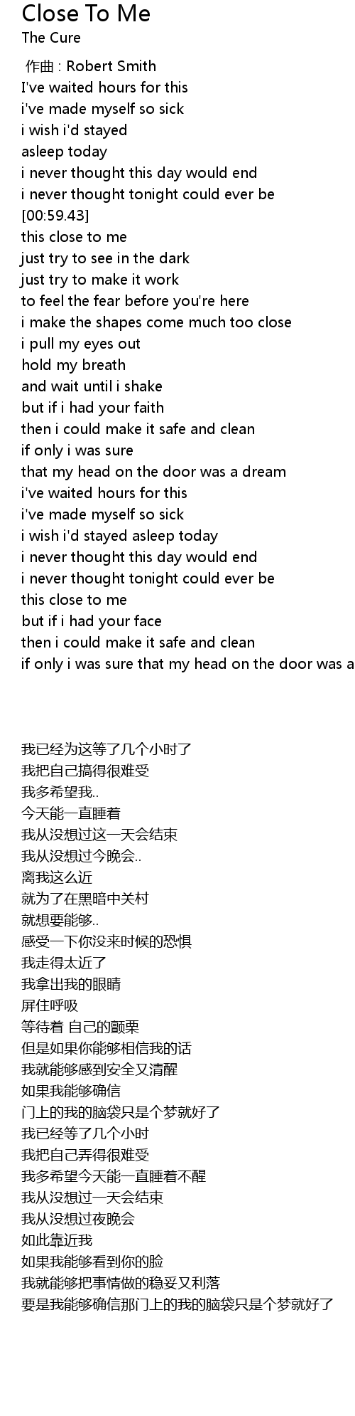 | [00:00.00] | zuo qu : Robert Smith |