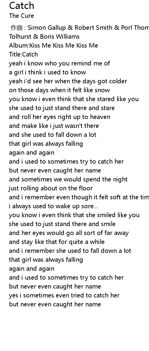 | [00:00.00] | 作曲 : Simon Gallup & Robert Smith & Porl Thompson & Laurence Tolhurst & Boris Williams |