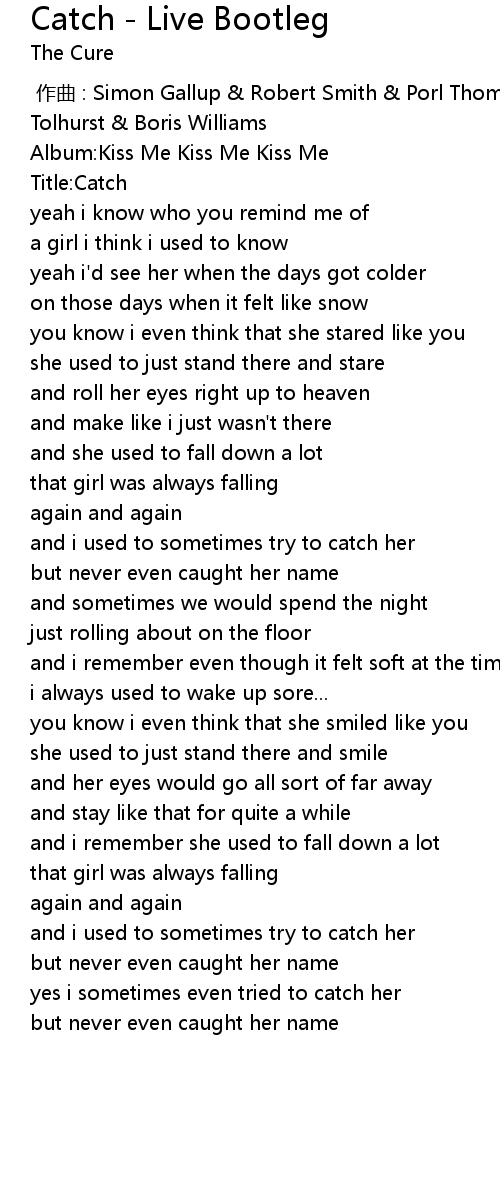 | [00:00.00] | 作曲 : Simon Gallup & Robert Smith & Porl Thompson & Laurence Tolhurst & Boris Williams |