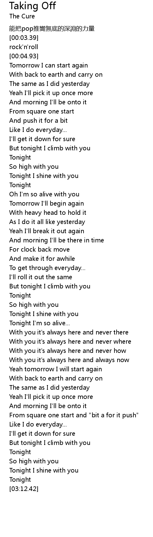 Taking Off 歌词