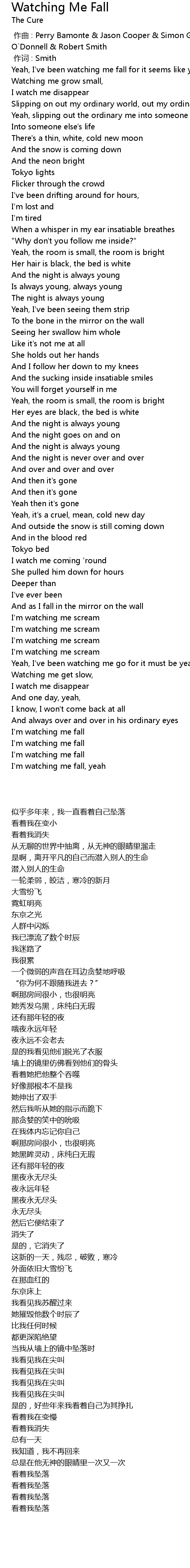 | 歌曲 | Watching Me Fall |