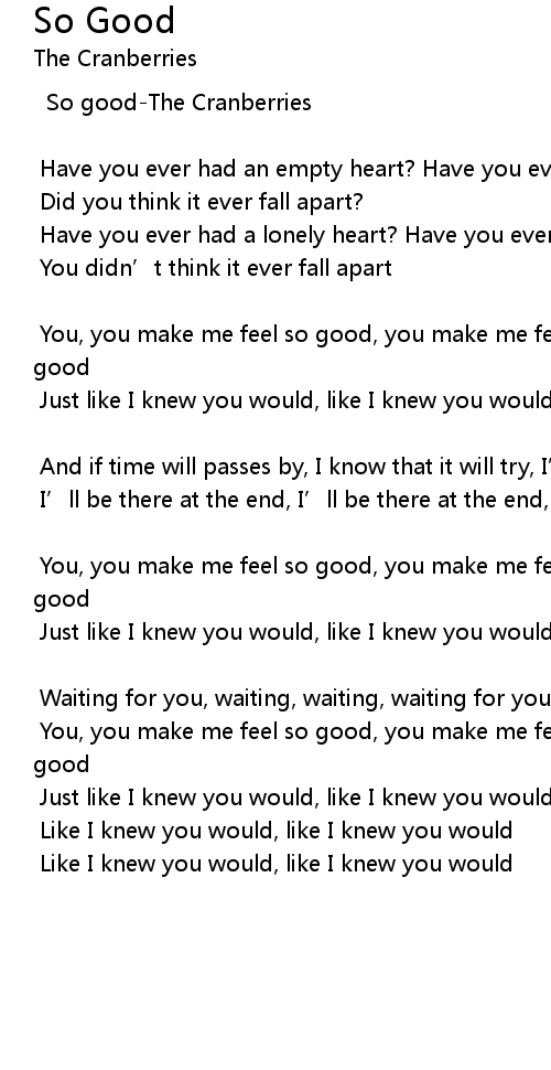 | You, you make me feel so good, you make me feel so good, you make me feel so good | |