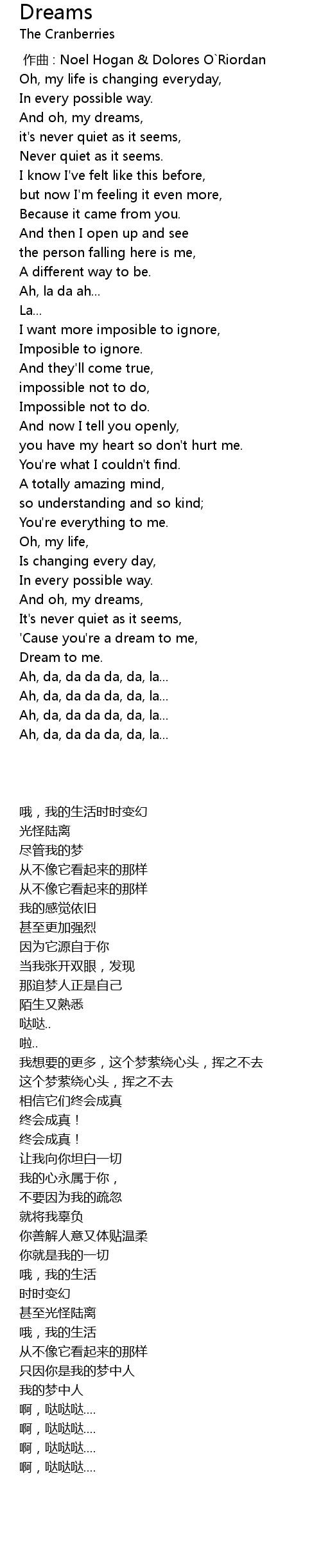 | [00:00.00] | zuo qu : Noel Hogan Dolores O Riordan |
