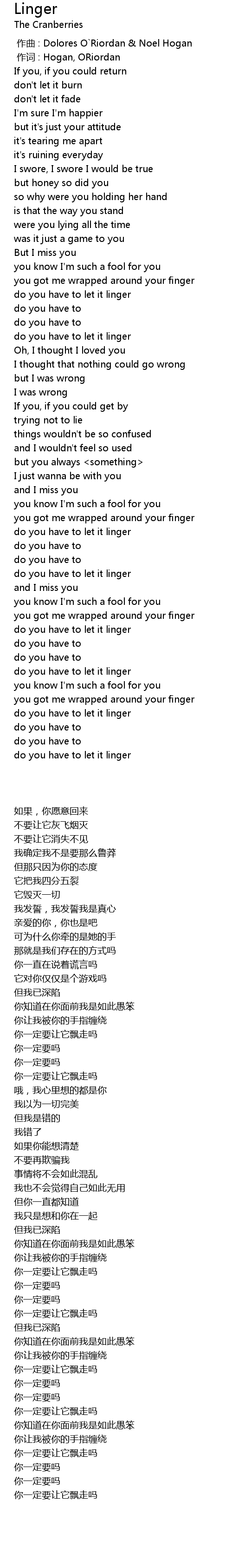 | [00:00.00] | 作曲 : Dolores O`Riordan & Noel Hogan |