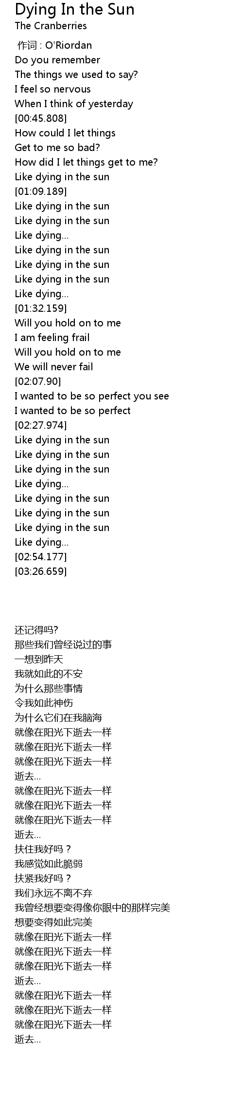 | [02:43.878] | Like dying in the sun |