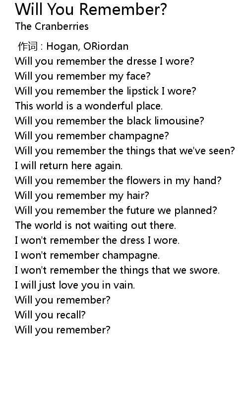 | 歌曲 | Will You Remember? |
