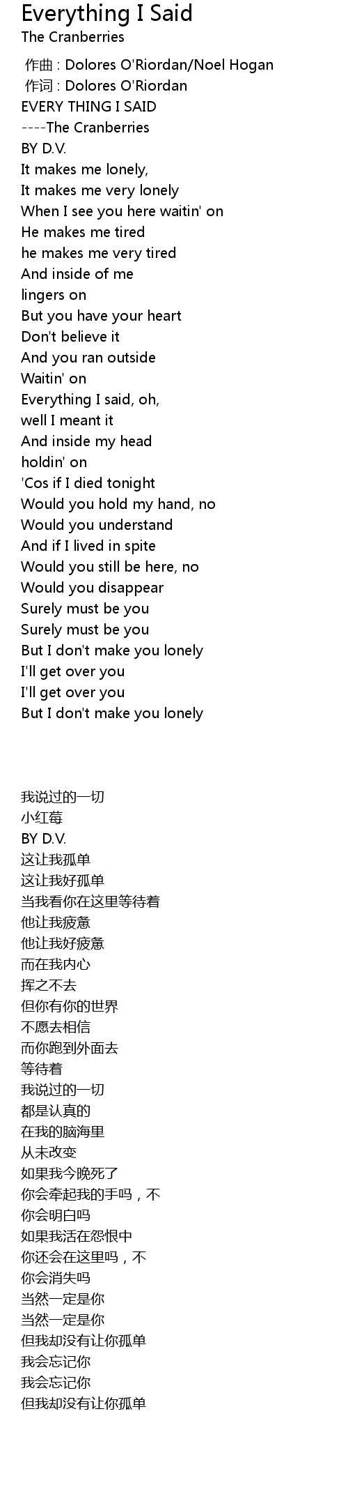 | [00:00.00] | 作词 : Dolores O'Riordan |