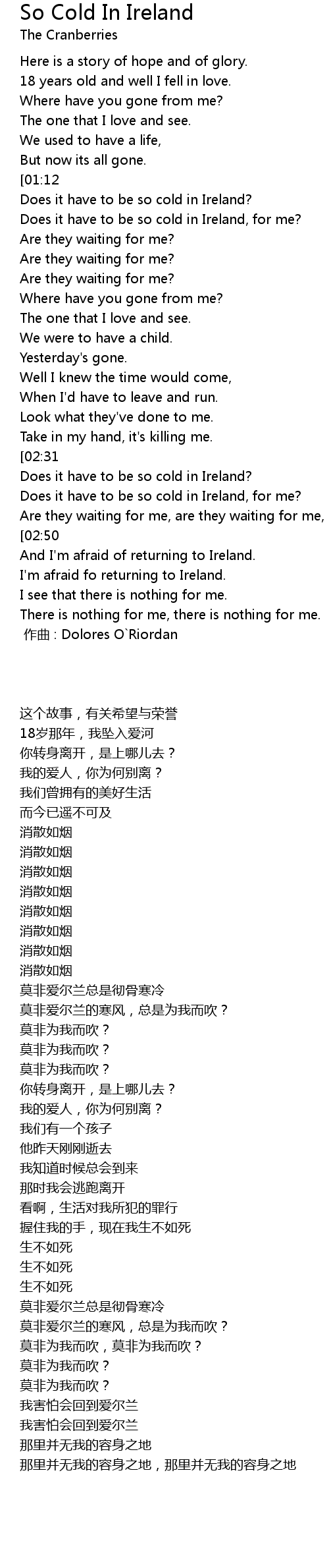 | [00:00.00] | 作曲 : Dolores O`Riordan |