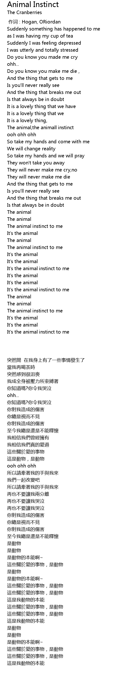 | [02:50.800] | It' s the animal instinct to me |