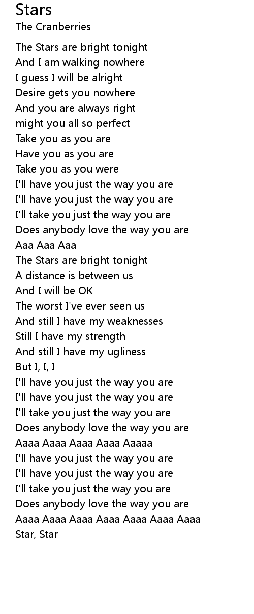Does anybody love the way you are |