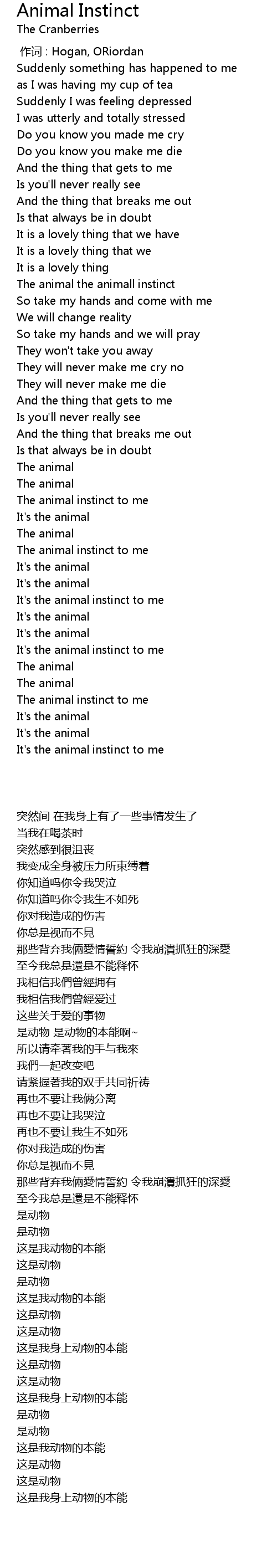| [02:30.110] | It' s the animal instinct to me |