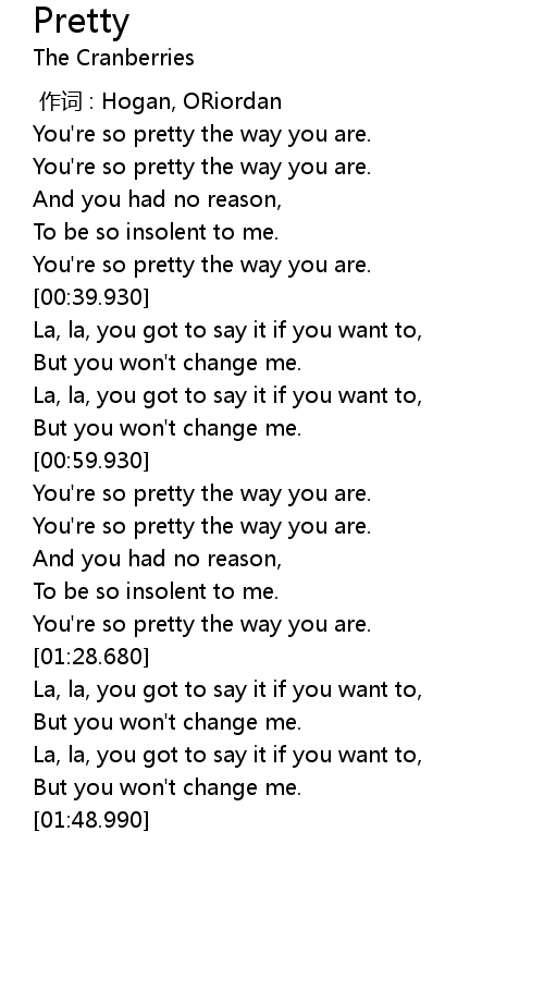| [00:20.700] | You're so pretty the way you are. |