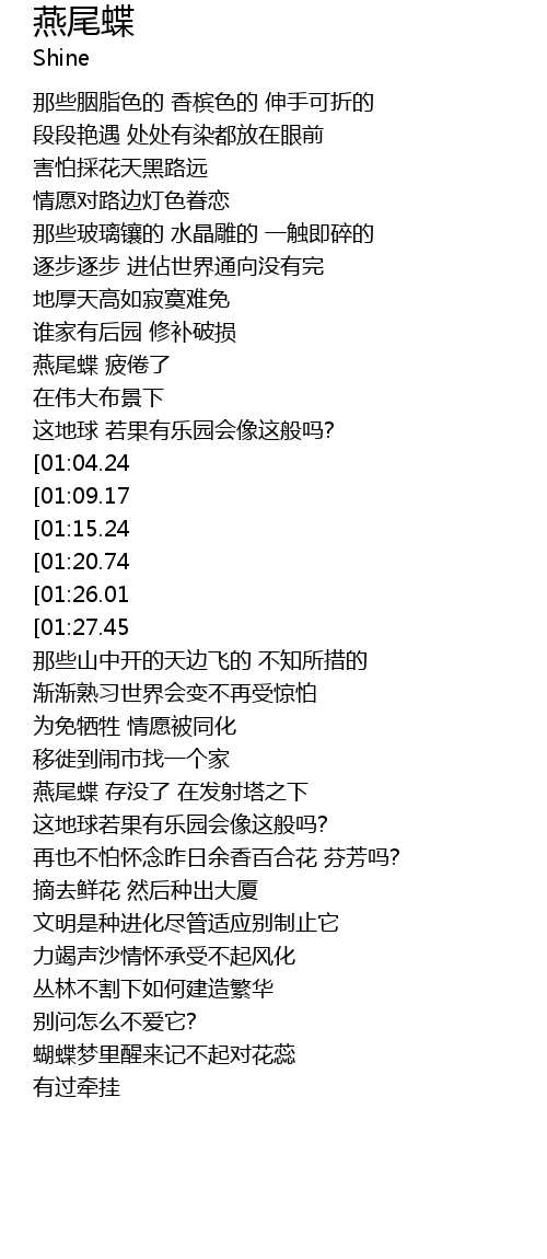 | [00:52.75] | 燕尾蝶 疲倦了 |