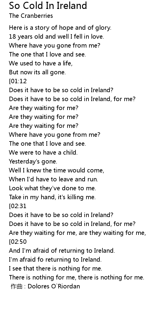 | [00:00.00] | 作曲 : Dolores O`Riordan |