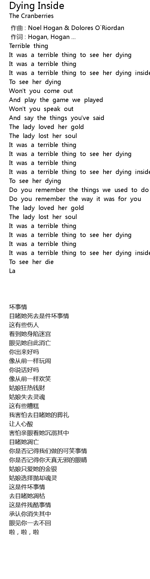 | [00:00.00] | zuò qǔ : Noel Hogan Dolores O Riordan |