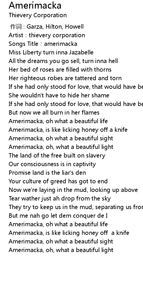 | [01:33.89] | Amerimacka, oh, what a beautiful light |