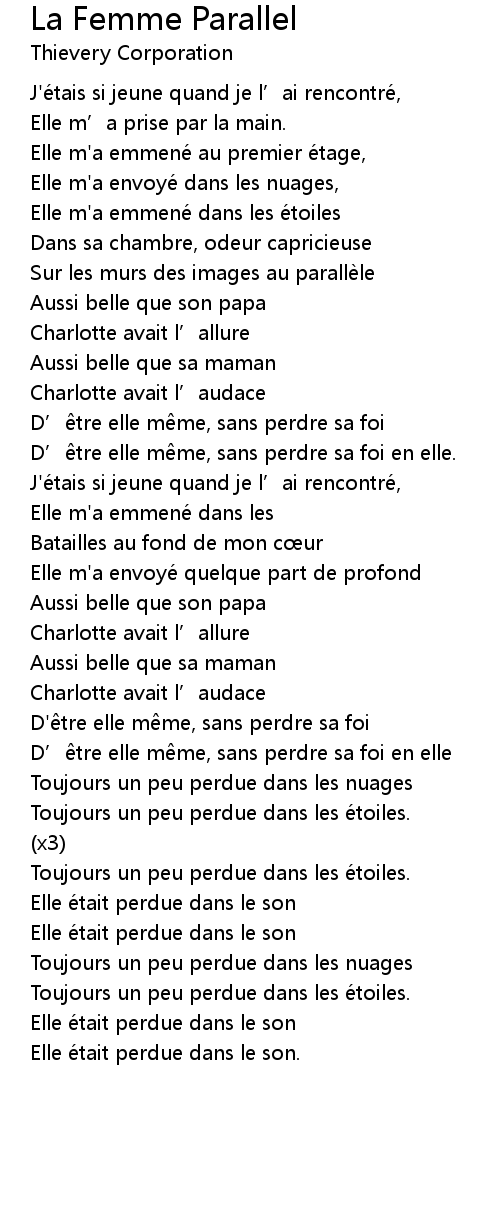 | 歌曲 | La Femme Parallel |