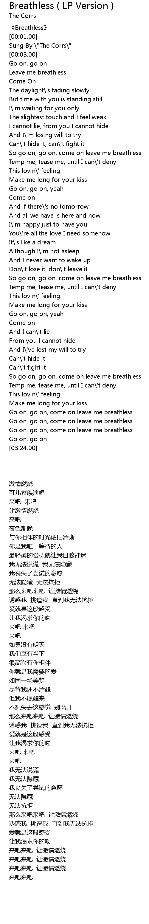 | [03:15.00] | Go on, go on, come on leave me breathless |