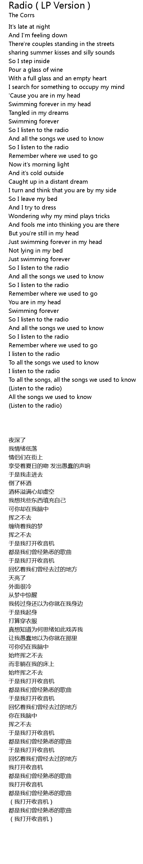 And all the songs we used to know |