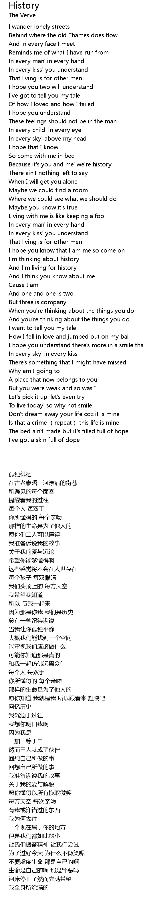 | 歌曲 | History |