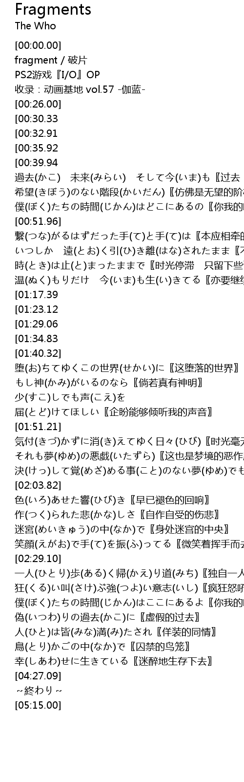 | [00:06.00] | PS2游戏『I/O』OP |