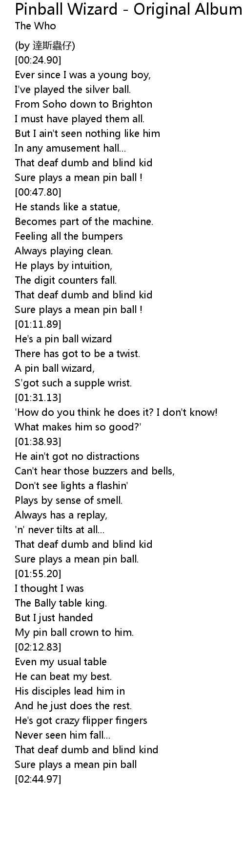| 歌曲 | Pinball Wizard - Original Album Version |