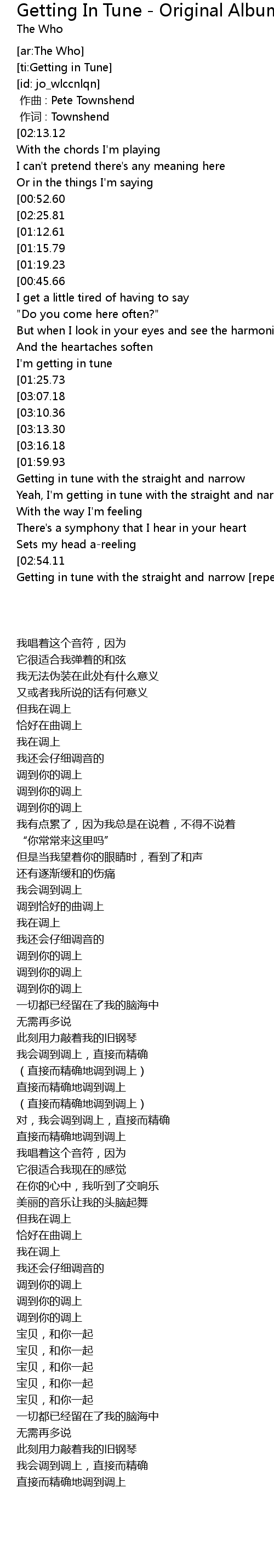 | [00:35.22][01:15.79][02:32.25] | I' m in tune |
