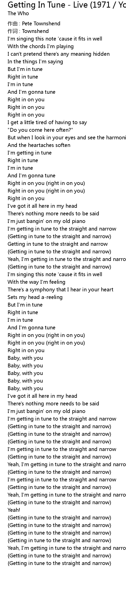 | I'm getting in tune to the straight and narrow | |
