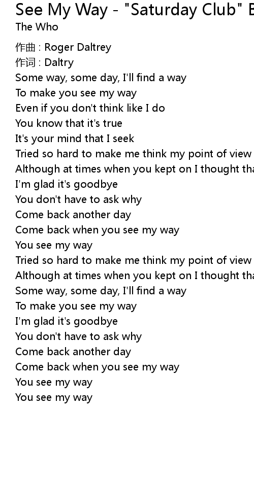 | You see my way |