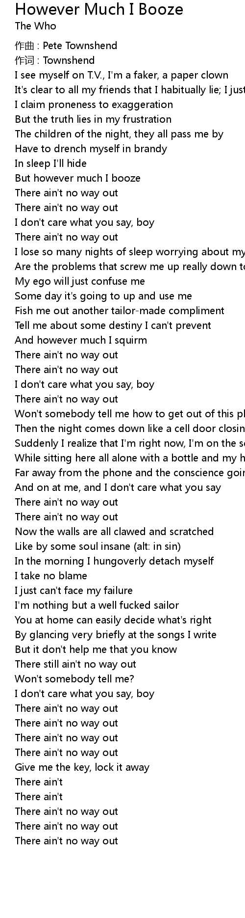 | There still ain' t no way out | |