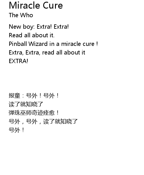 | [00:03.17] | Pinball Wizard in a miracle cure ! |