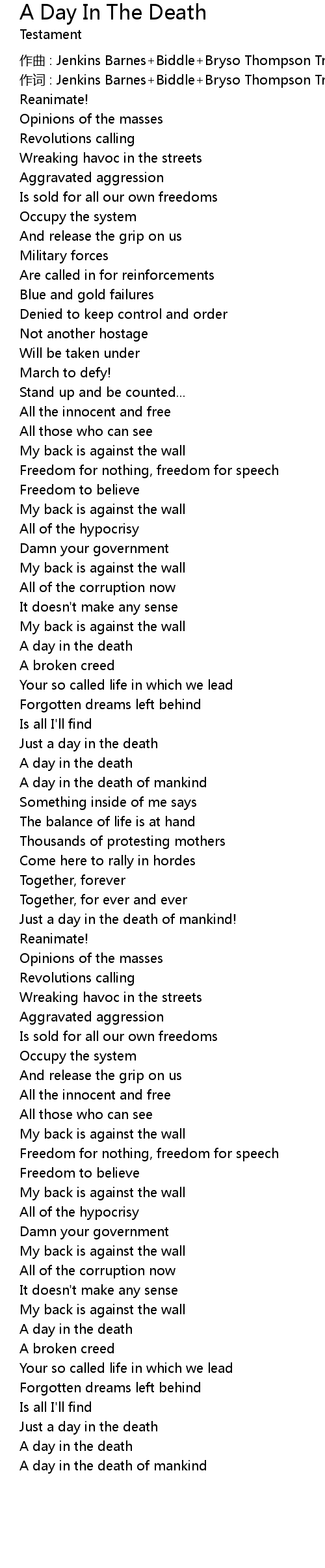 | 歌曲 | A Day In The Death |