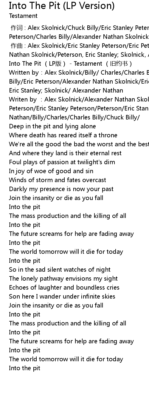 | [00:00.10] | Into The Pit (LP版) - Testament (旧约书) |