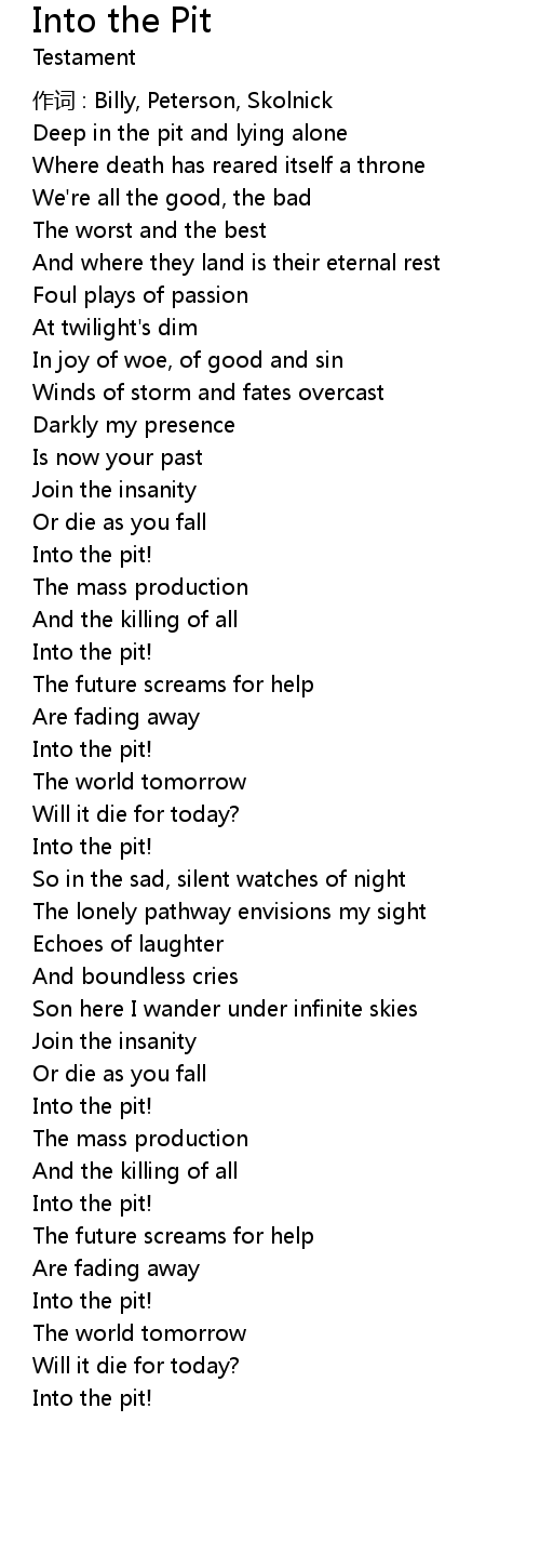 | 歌曲 | Into the Pit |