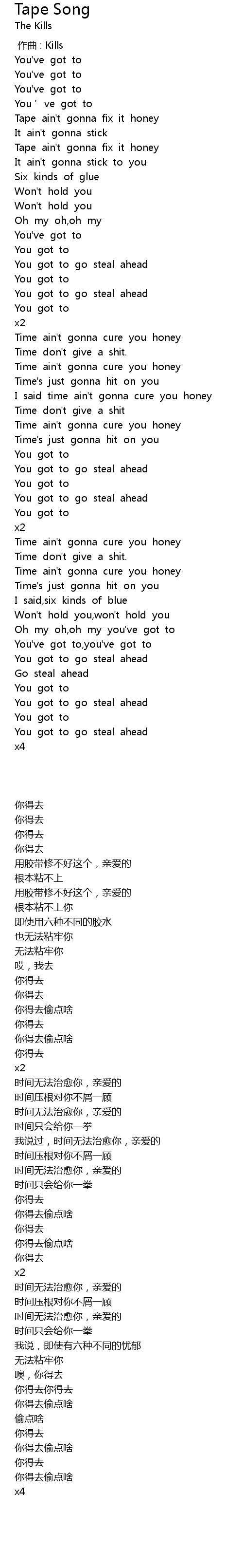 | [00:32.87] | Tape ain't gonna fix it honey |
