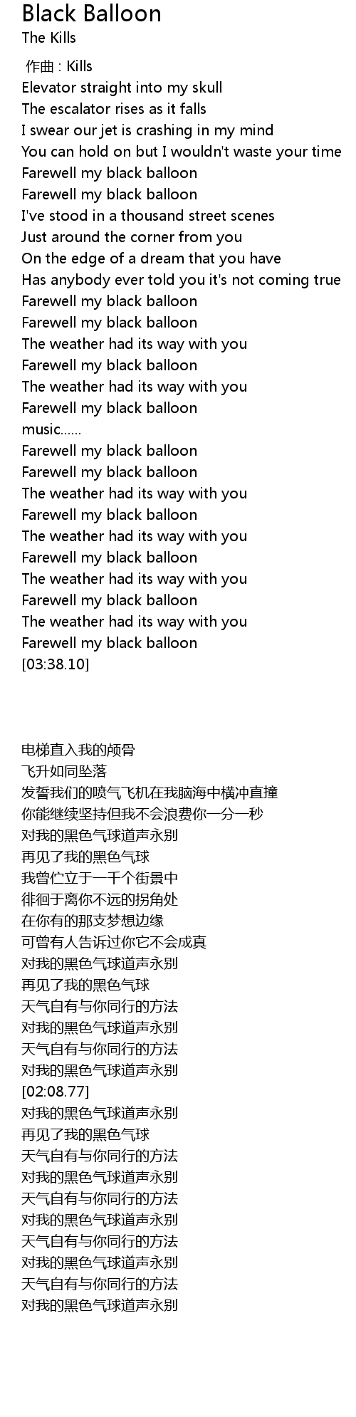 | [02:48.62] | 对我的黑色气球道声永别 |